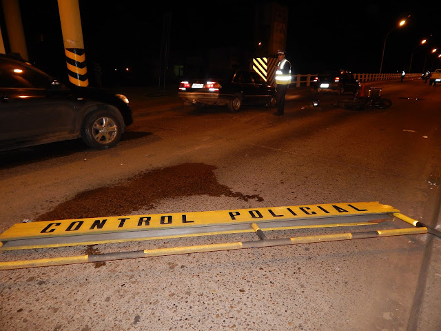Motociclista alcoholizado se llevó por delante la barrera de control policial a la entrada del puente de la Concordia en la noche de este pasado domingo.