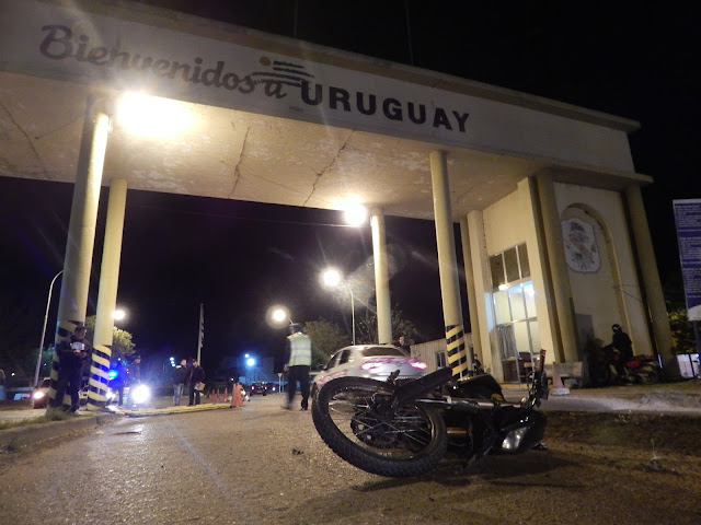 Próximo a las 23.00 horas de este domingo, un hombre mayor de edad que conducía una motocicleta matriculada en Artigas en dirección a la ciudad de Quaraí embistió una barrera de control policial en la cabecera del puente internacional de la Concordia.