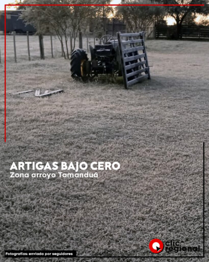 El departamento de Artigas amaneció cubierto de blanco este martes por una intensa helada, producto de la ola de frío polar que azota la región. Las temperaturas mínimas oscilaron entre los -5°C y -1°C, transformando el paisaje y regalando postales invernales. Vecinos compartieron sus registros en las redes sociales.